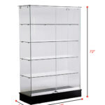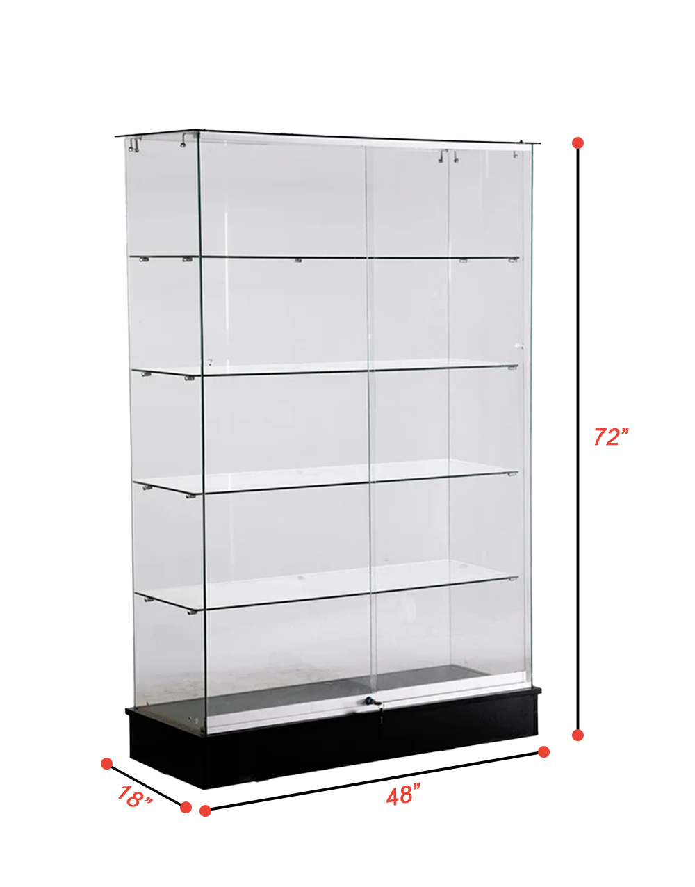 The wall display case is a sleek and practical fixture for showcasing merchandise while keeping it secure. Measuring 48″L x 18″W x 72″H, it provides ample space for display without taking up excess floor area.