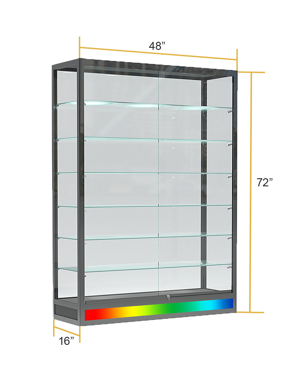 - 48” W x 16” D x 72” H Extra Vision Wall Case