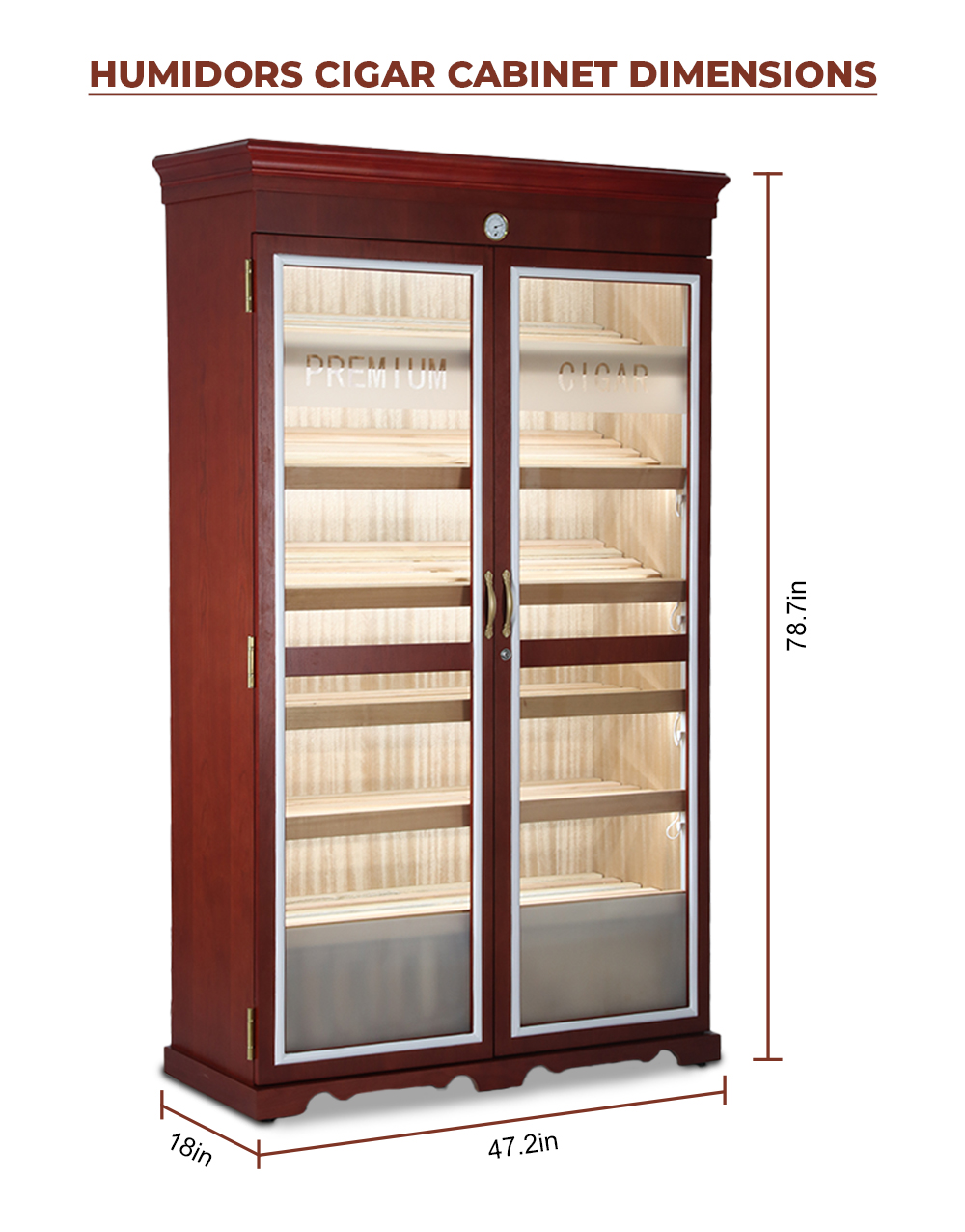 The Double Door Cherry Cigar Humidor Cabinet is designed for collectors and retailers who need both capacity and craftsmanship. Finished in an elegant cherry tone, this cabinet brings a touch of luxury furniture style to any space while protecting cigars in the perfect environment for cigar aging. Its Spanish cedar interior helps maintain consistent humidity and enhances flavor preservation, making it a trusted cabinet humidor for serious cigar storage.